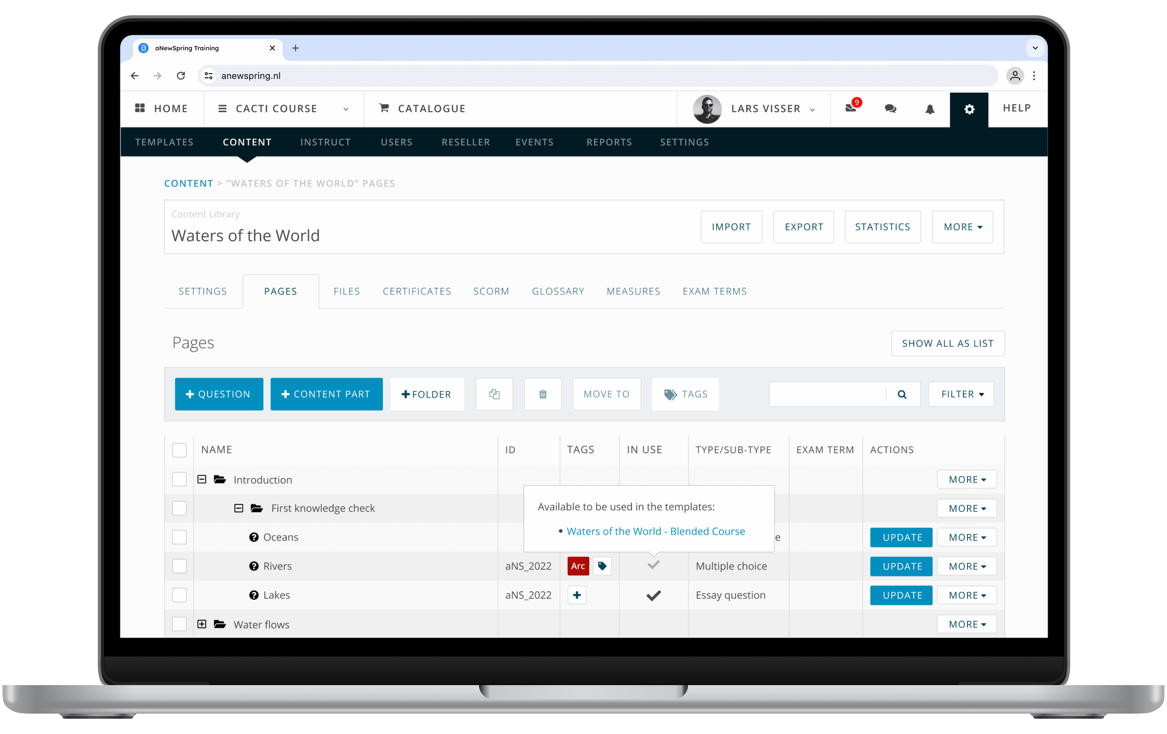 Users that are linked to a content library as author and as designer, no longer need to go into the template to see exactly where content is in use. They will be able to see in which activity a content part or question is used from the content library tab!