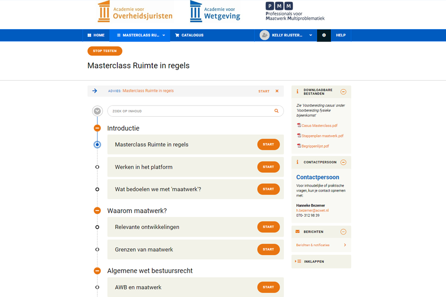 The plan? Turning the pre-existing, successful masterclass ‘Ruimte in Regels’ into an enriched learning experience, with both online and offline elements. This masterclass is one of many instruments PMM offers in their professional development pillar. The reason for adding e-learning to the course was that they would now be able to reach a wider audience.