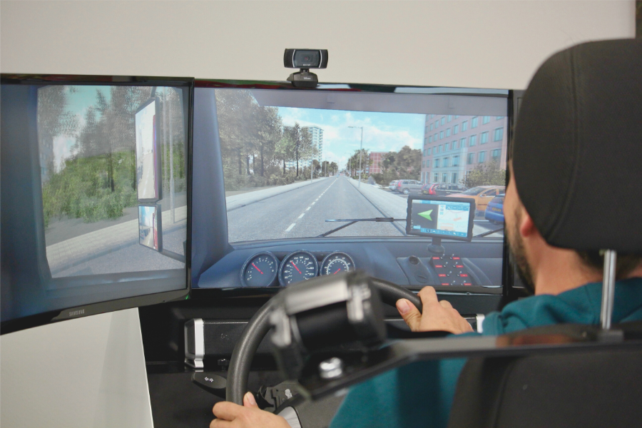 Then, a favourite practical activity: Using the driving simulator to learn the fine art of braking, cornering, and steering in various situations. At the end of this phase, participants attend three road training sessions, each building on the last and culminating in an assessment of their own driving and instructor skills.