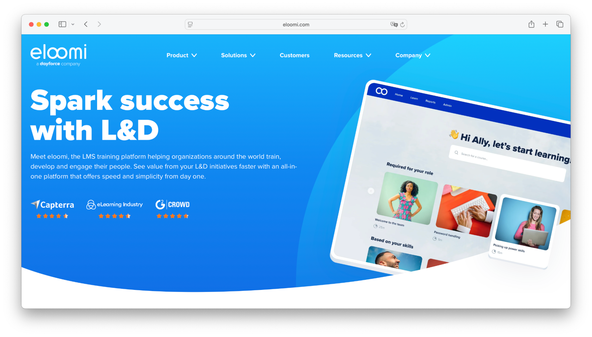 eloomi is a versatile learning and development platform tailored for mid-sized organisations that want to set up effective blended learning programmes. One of the perks of using eloomi is that it offers nice mobile and MS Teams apps, allowing learners to take their blended learning courses on-the-go.