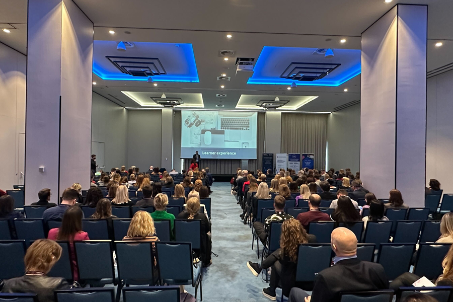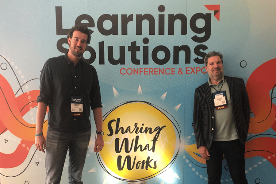 Regarding international events, I had the privilege to visit and speak at the Learning Solutions Conference. My colleague Roy and I talked about Jobs-to-be-Done (JTBD) for learning design. It was in April, and the conference organisers had a smart system with coloured wristbands in place to regulate social distancing.
