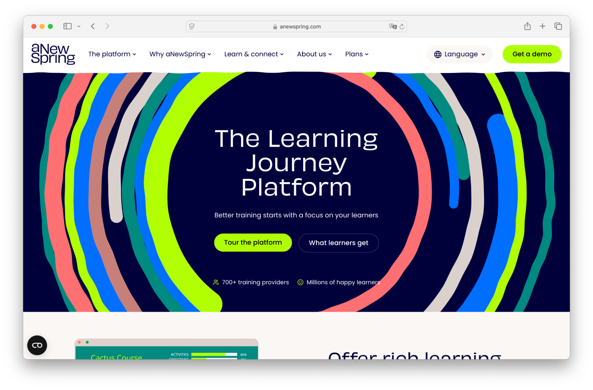 Not your standard corporate LMS: aNewSpring is specifically designed for training providers. However, it could still be suitable for internal corporate training teams looking to go beyond the traditional way of helping employees learn.