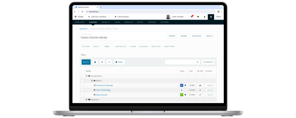 Authors who are used to tagging content libraries and content can now apply the same way of organising to files. Files can be tagged on the files overview page within a content library.